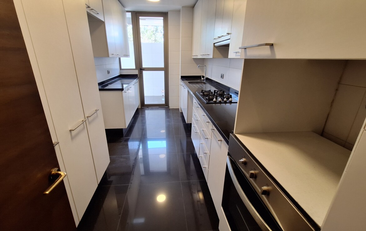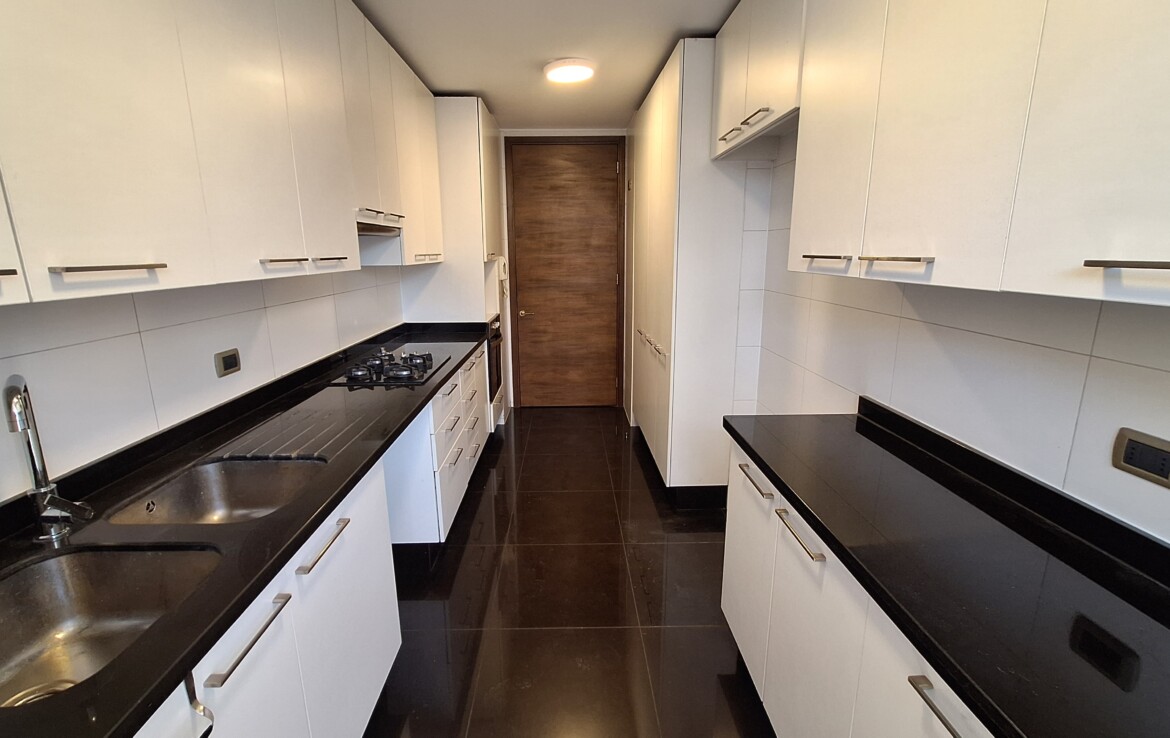 Cocina amoblada y equipada con horno eléctrico y encimera a gas, además con loggia.